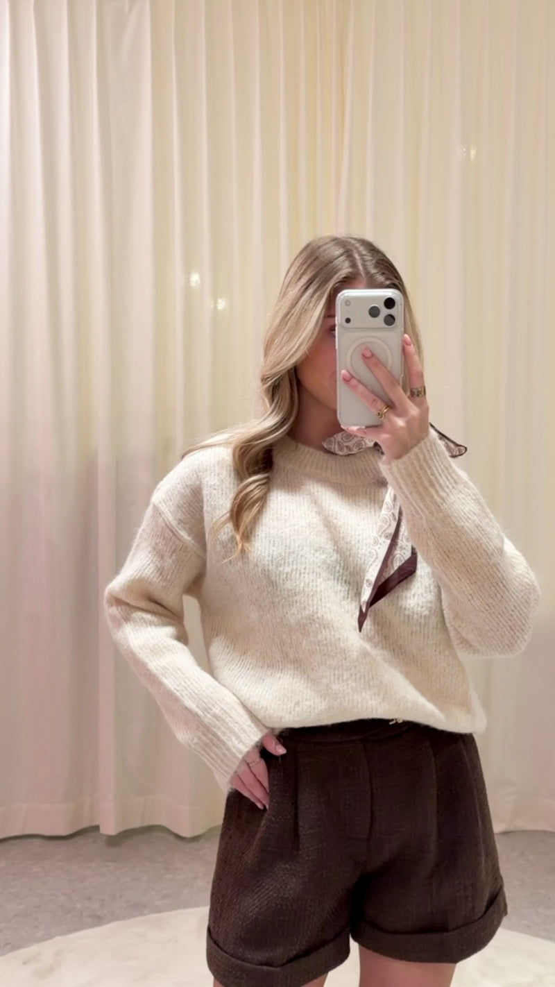 BOW SHOULDER SWEATER CREAM